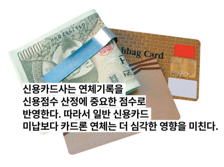 연체가 발생하면 카드사는 바로 문자나 전화로 독촉을 시작한다. 이때부터 원금에 더해 연체 이자까지 부담해야 하니 빚은 눈덩이처럼 불어난다. 가장 무서운 건 연체 기록이 전국은행연합회를 통해 모든 금융기관에 공유된다는 점이다. 카드 대출 한 번 제때 못 갚았다고 다른 은행 대출도 거절당할 수 있는 셈이다.